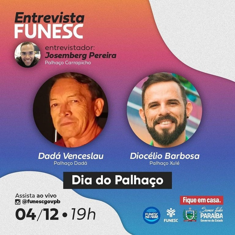 Você está aqui: Página Inicial > Notícias > Cultura > Dia do Palhaço: Funesc Entrevista recebe Dadá Venceslau e Diocélio Barbosa