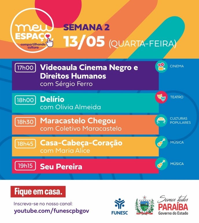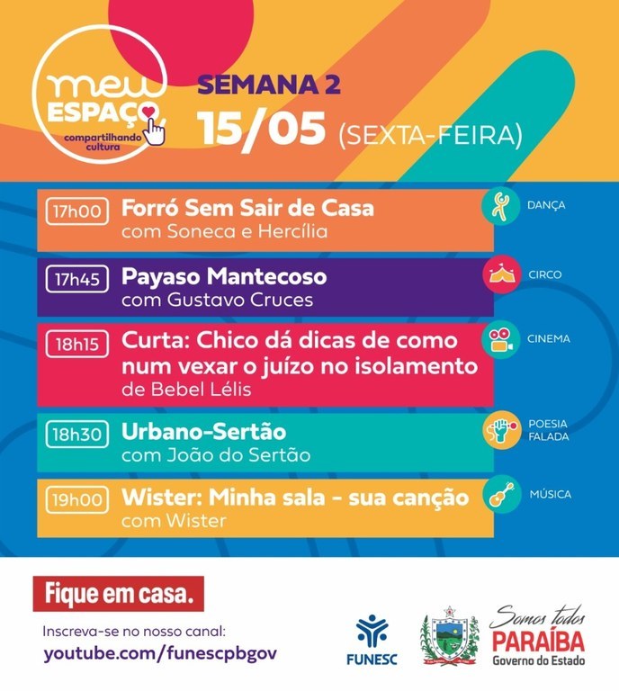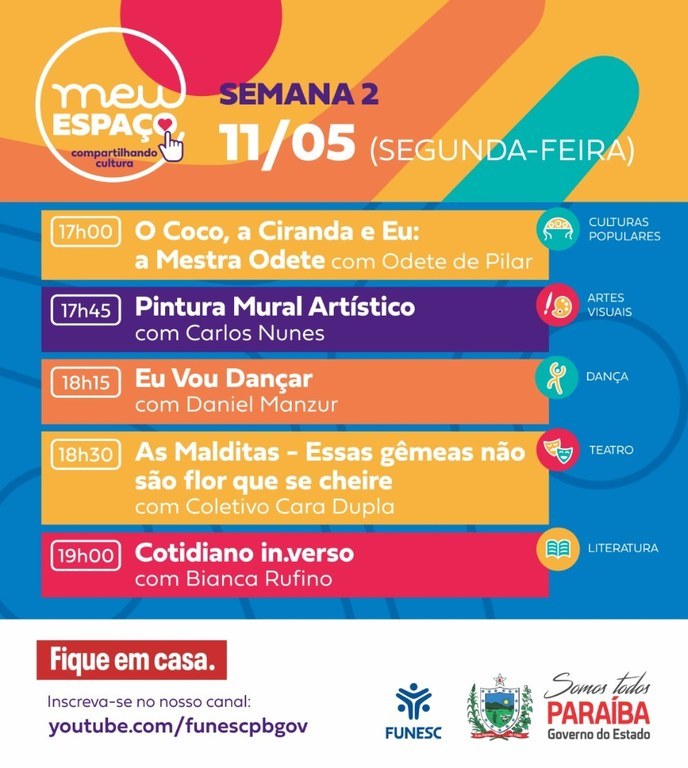 Você está aqui: Página Inicial > Notícias > Cultura > Funesc inicia segunda semana da programação ‘Meu Espaço - Compartilhando Cultura’