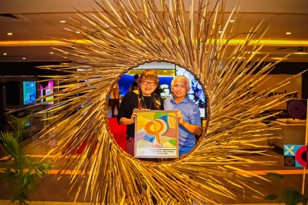 - Tizuka Yamasaki com o diretor executivo da Funjope, Marcus Alves, durante homenagem, no Mag Shopping; cineasta também participou do acordo de criação da Agência de Cinema e Audiovisual e da João Pessoa Film Comission