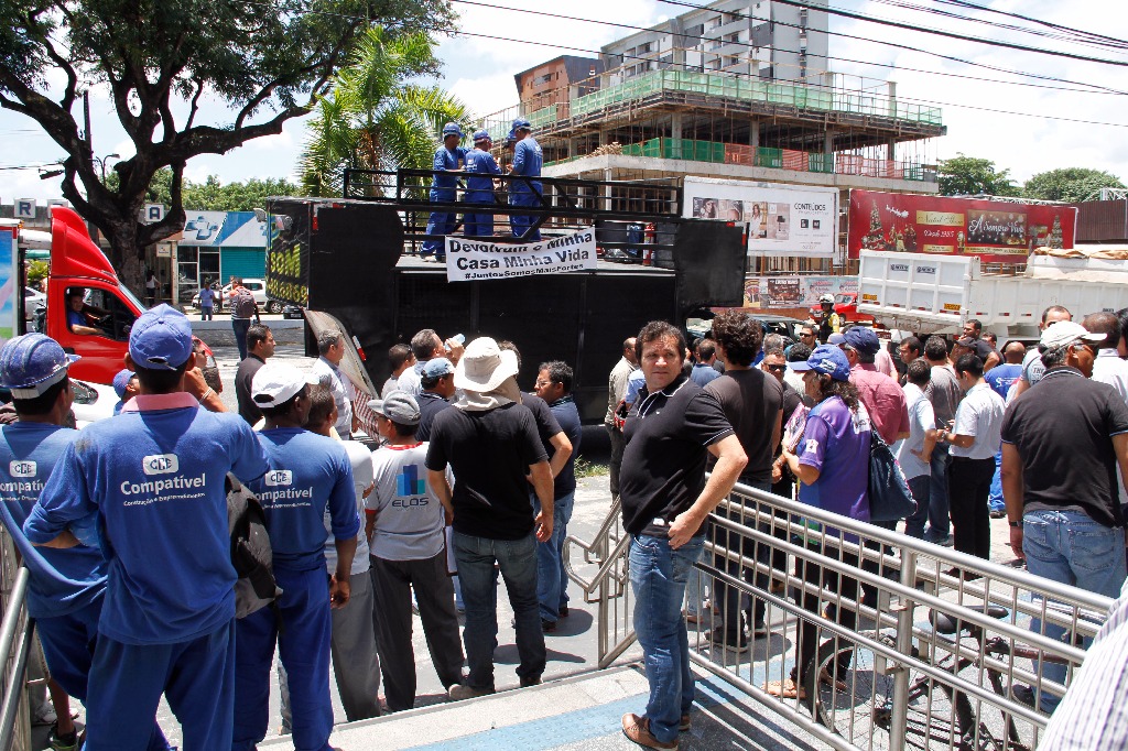 Após carreata, os manifestantes se reuniram na CEF da Epitácio Pessoa e seguiram até a Praça 1814