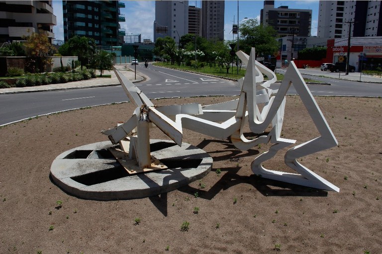 Escultura de rotatória do Bessa cai por falta de manutenção