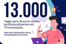 Estão abertas as inscrições para 13 mil vagas em cursos profissionalizantes do Paraíbatec