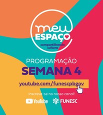 O Fundação Espaço Cultural da Paraíba (Funesc) inicia, nesta segunda-feira (25), a quarta semana da programação ‘Meu Espaço – Compartilhando Cultura’. O projeto é fruto de um edital criado em virtude da pandemia do novo coronavirus (COVID-19), que contemplou mais de 100 artistas paraibanos para apresentações gravadas em vídeos, durante o período de isolamento domiciliar. A quarta semana, que acontece de 25 a 31 de maio, traz 16 vídeos de diversas áreas intercalando entre formações e apresentações. Como sempre, o domingo é da criança.