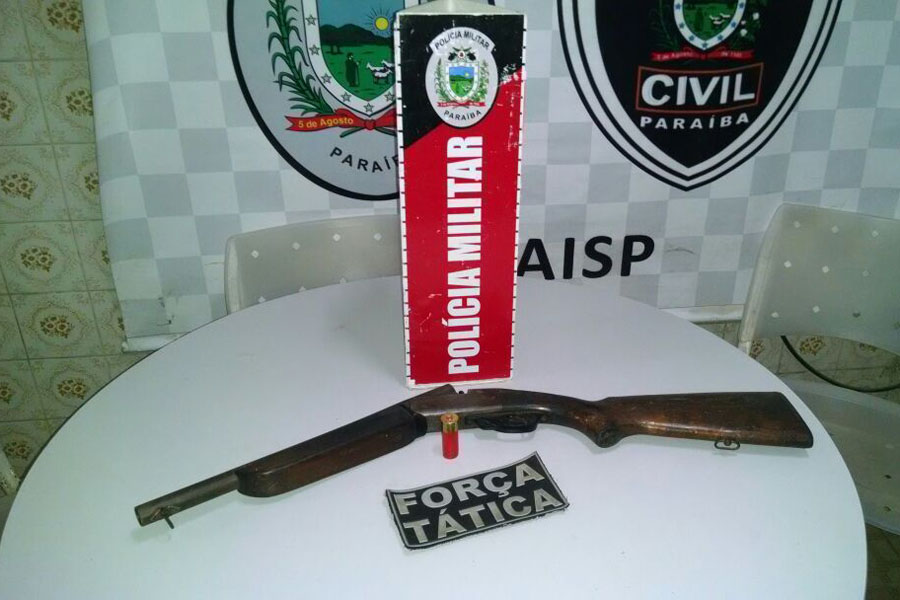 Policiais da 2ª Companhia Independente prenderam Gilvandro Silva, de 40 anos, em Mamanguape, com uma espingarda