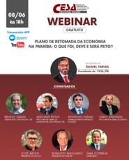 Assim, O CESA-PB cumprindo seu papel institucional de fomentar esse debate entre as instituições, reunirá representantes do Poder Público e iniciativa privada, analisando cenários e coletando sugestões de medidas que possam ser incorporadas nesse Plano de Retomada da Economia em nosso Estado. As Inscrições para o evento podem ser feitas pelo link - https://us02web.zoom.us/webinar/register/WN_87DxkVuQStKTQZTJY-hsYg.