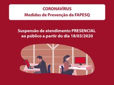 Seguindo determinação do governador do Estado da Paraíba, João Azevêdo, a Fundação de Apoio à Pesquisa da Paraíba (Fapesq) torna de conhecimento público as medidas de prevenção ao coronavírus, ao funcionamento e atendimento ao público. Está suspenso a partir do dia 18/03/2020 por tempo indeterminado o atendimento presencial ao público na sede da Fapesq e no escritório em João Pessoa. O atendimento permanece apenas por telefone (83 - 99921 4203) e e-mail (fapesq@fapesq.rpp.br / secretaria@fapesq.rpp.br / programas-projetos@fapesq.rpp.br).