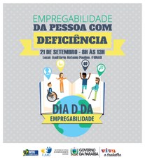 O Governo do Estado, por meio da Secretaria de Estado do Desenvolvimento Humano (SEDH) e da Fundação Centro Integrado de Apoio ao Portador de Deficiência (Funad), realiza amanhã, 21 de setembro, em parceria com o MTE, a partir das 8h, o Dia D da Empregabilidade. O evento acontece no auditório da Funad com a presença do Sine-PB e empresas. O objetivo da ação é promover a inserção de pessoas com deficiência no mercado de trabalho e criar espaços de discussão e informações sobre qualificação e capacitação profissional.