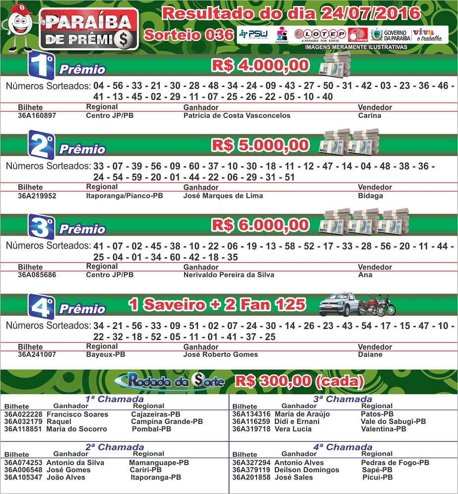RESULTADO PARAÍBA DE PRÊMIOS SORTEIO 24/07/2016