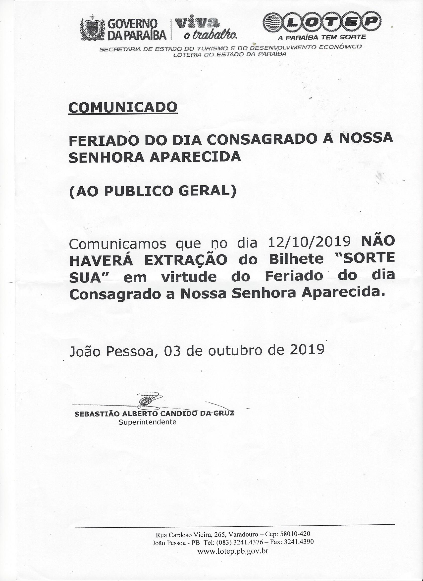 COMUNICADO OFICIAL (FERIADO DIA DA INDEPENDÊNCIA)