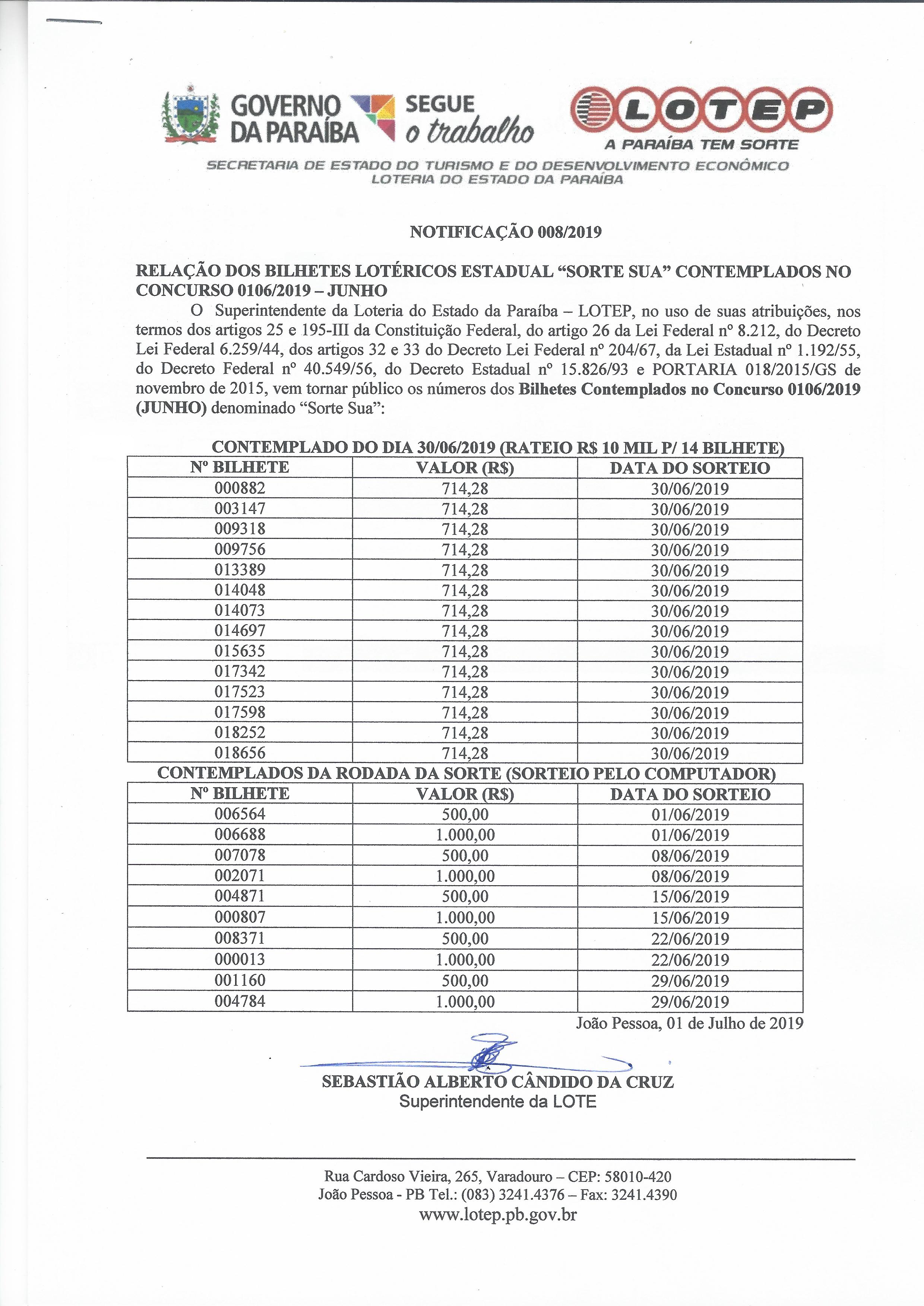 CONTEMPLADOS NO CONCURSO 0106 / JUNHO / 2019