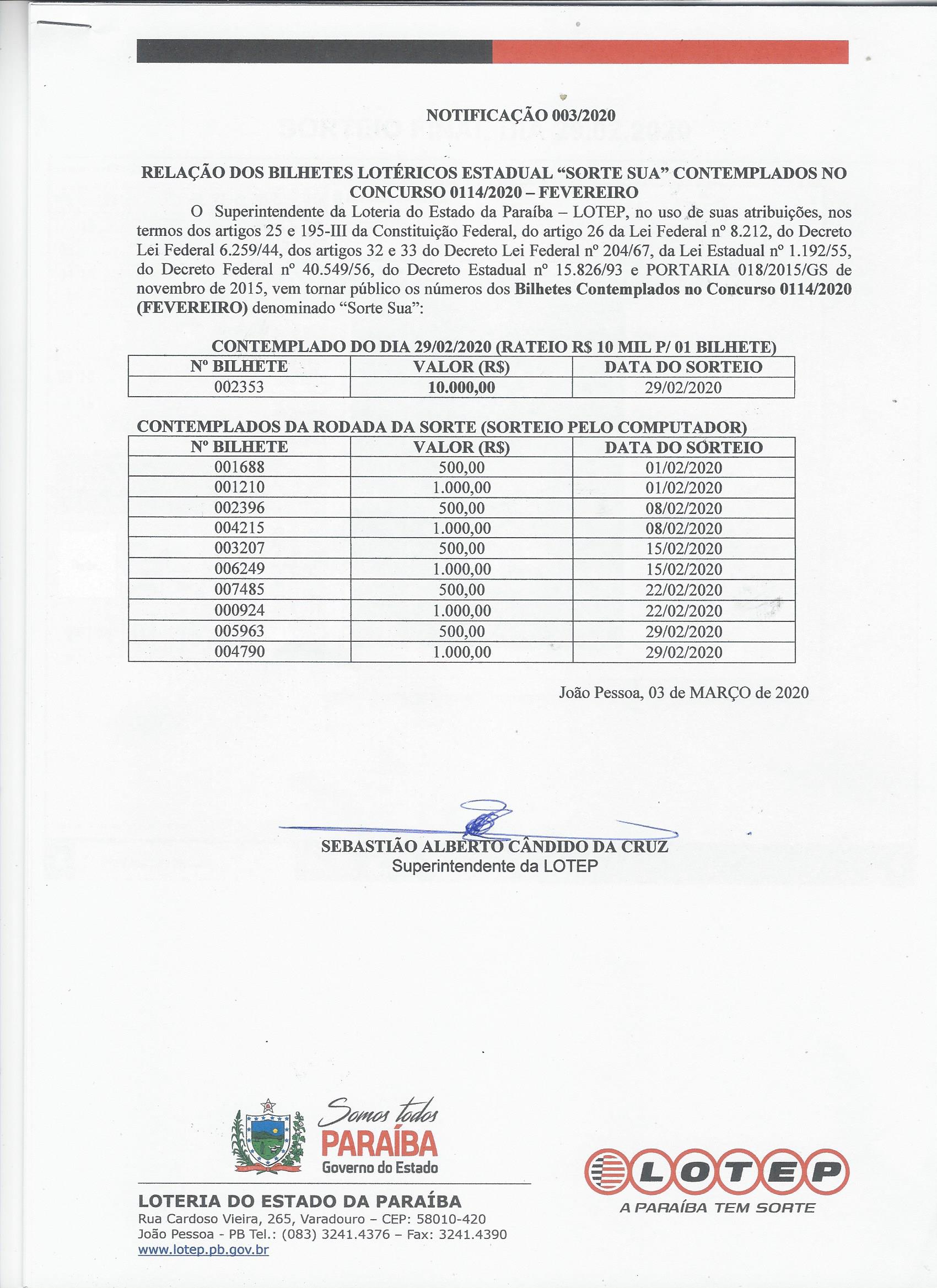 CONTEMPLADOS NO CONCURSO 0114 - FEVEREIRO - 2020