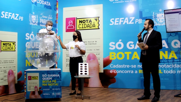 Participaram do 20º Sorteio – Participaram do 20º sorteio do Nota Cidadã do ano, a gerente do Programa de Educação Fiscal da SEFAZ, Ciliana Nunes, o chefe de Fiscalização da LOTEP, auditor tributário Nemésio Gomes Cavalcanti, o analista de Sistemas do Portal da Cidadania, João Finazzi, além da equipe da Codata, responsável pela transmissão para o canal do YouTube da Sefaz, e do Instagram da LOTEP. O locutor Lucas Pereira fez a transmissão e apresentação mais uma vez do sorteio do Programa Nota Cidadã.