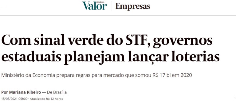 Você está aqui: Página Inicial > Adm. Indireta > LOTEP > Menu Principal > Notícias > Paraíba é destaque em revista nacional de economia, estado tem loteria regulamentada e estuda ampliar ações