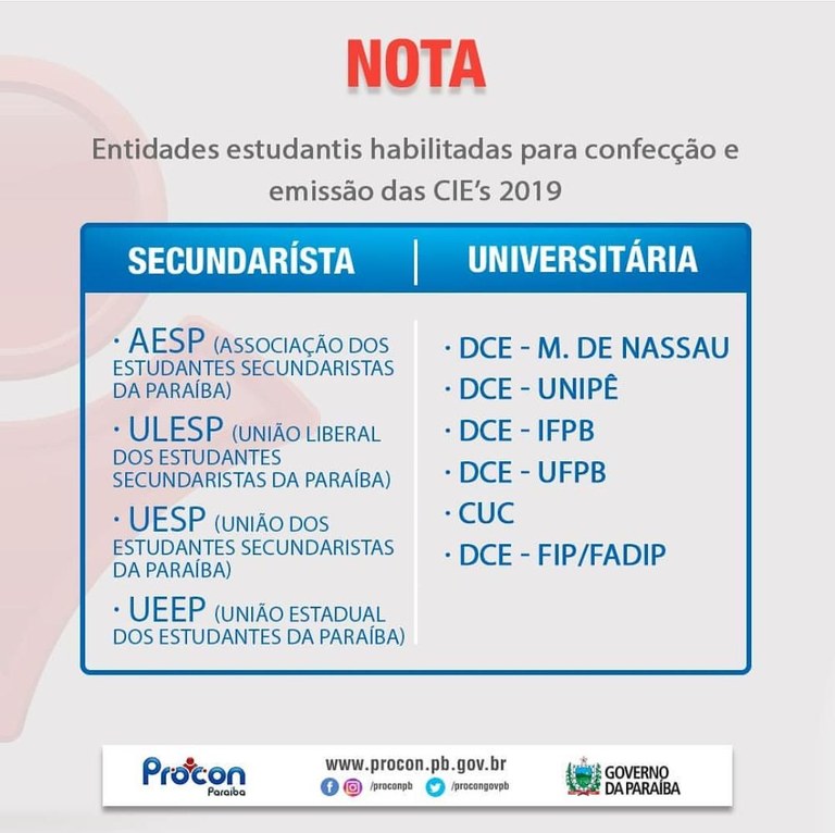 Você está aqui: Página Inicial > Adm. Indireta > PROCON > Notícias > PROCON-PB ESCLARECE DÚVIDAS SOBRE A OBRIGATORIEDADE DAS CARTEIRAS ESTUDANTIS