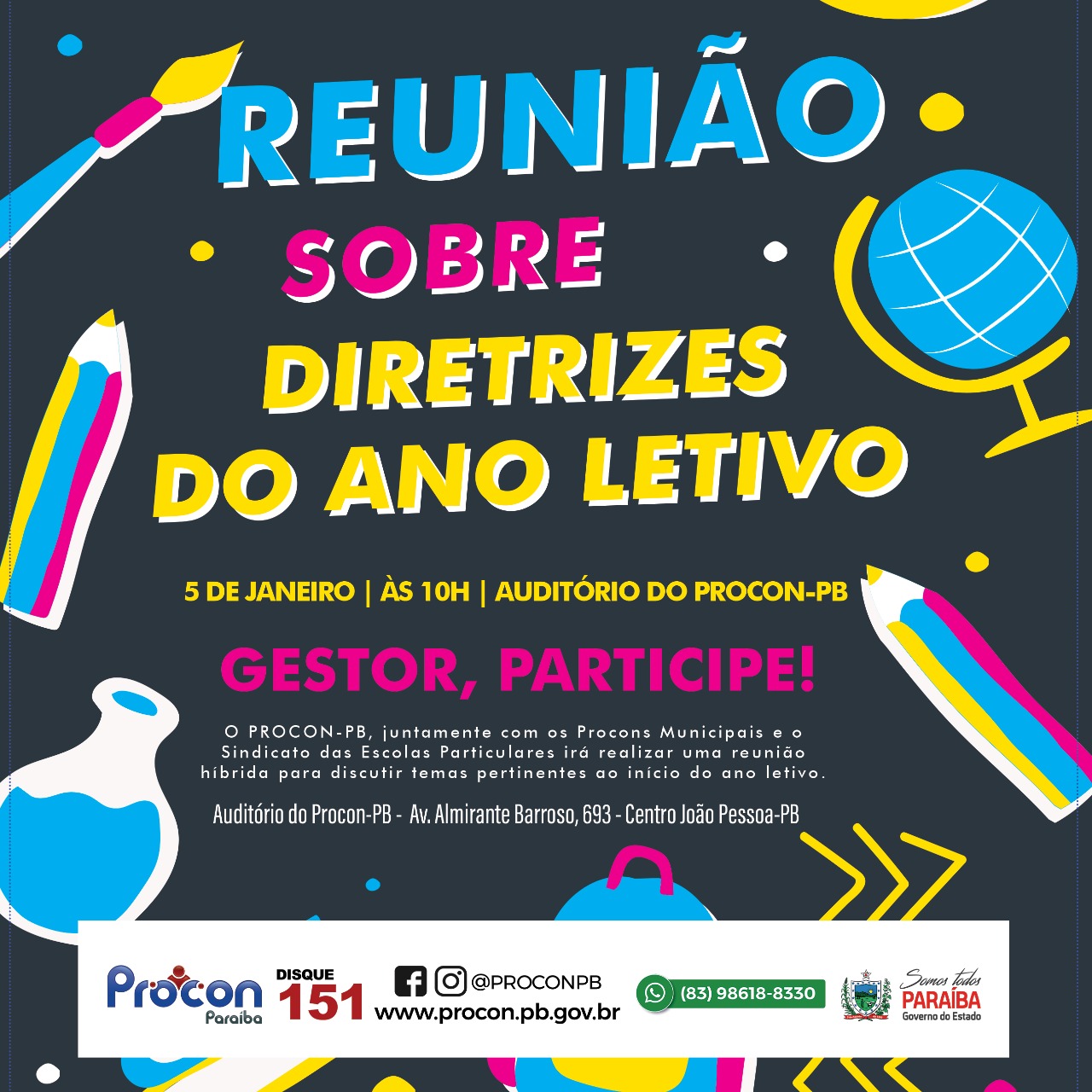 O Procon Estadual da Paraíba irá realizar reunião sobre as diretrizes para o início do ano letivo.