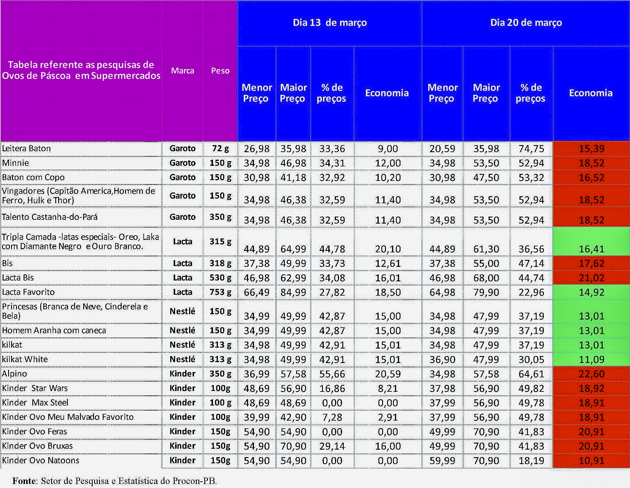 Ovos de Páscoa têm diferenças de até R$ 22,60 entre os supermercados de João Pessoa, afirma pesquisa do Procon Estadual da Paraíba.