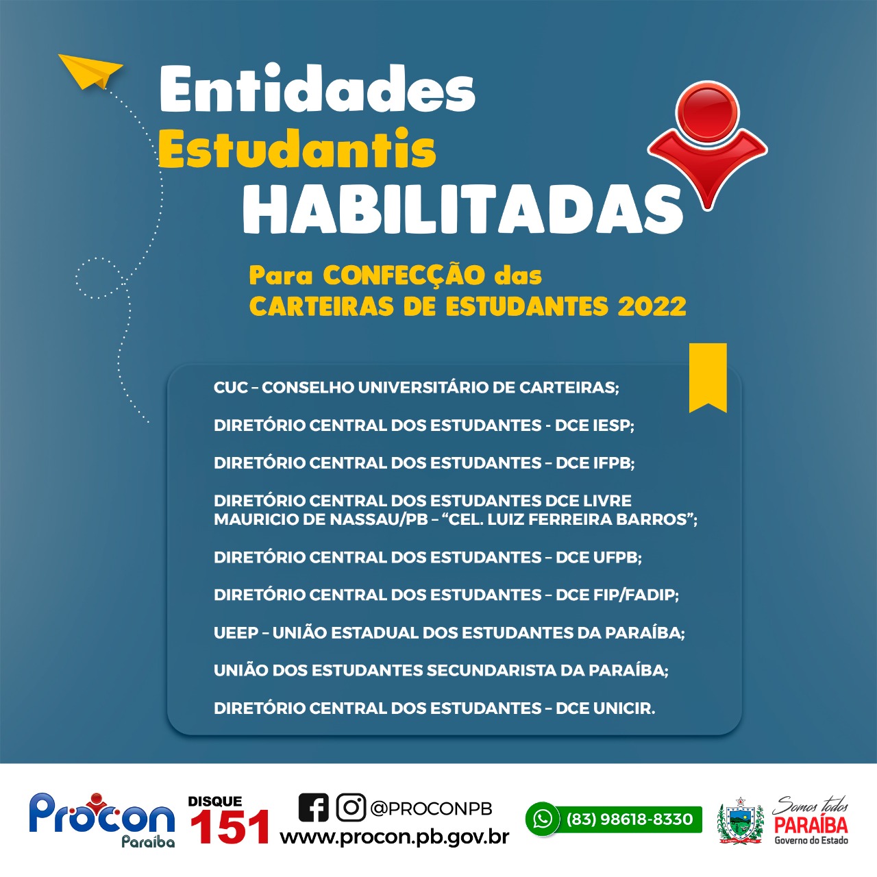 PROCON-PB credencia entidades para emissão e confecção da carteira de identidade estudantil 2022