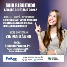 PROCON-PB DIVULGA RESULTADO FINAL DO PROCESSO SELETIVO 2019.2