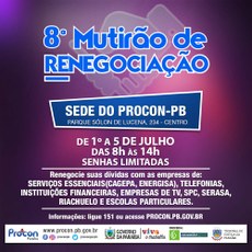 A Autarquia de Proteção e Defesa do Consumidor da Paraíba, Procon-PB, realizará a partir da próxima segunda-feira, 1º, a oitava edição do mutirão de atendimento aos endividados em sua sede na Capital paraibana.