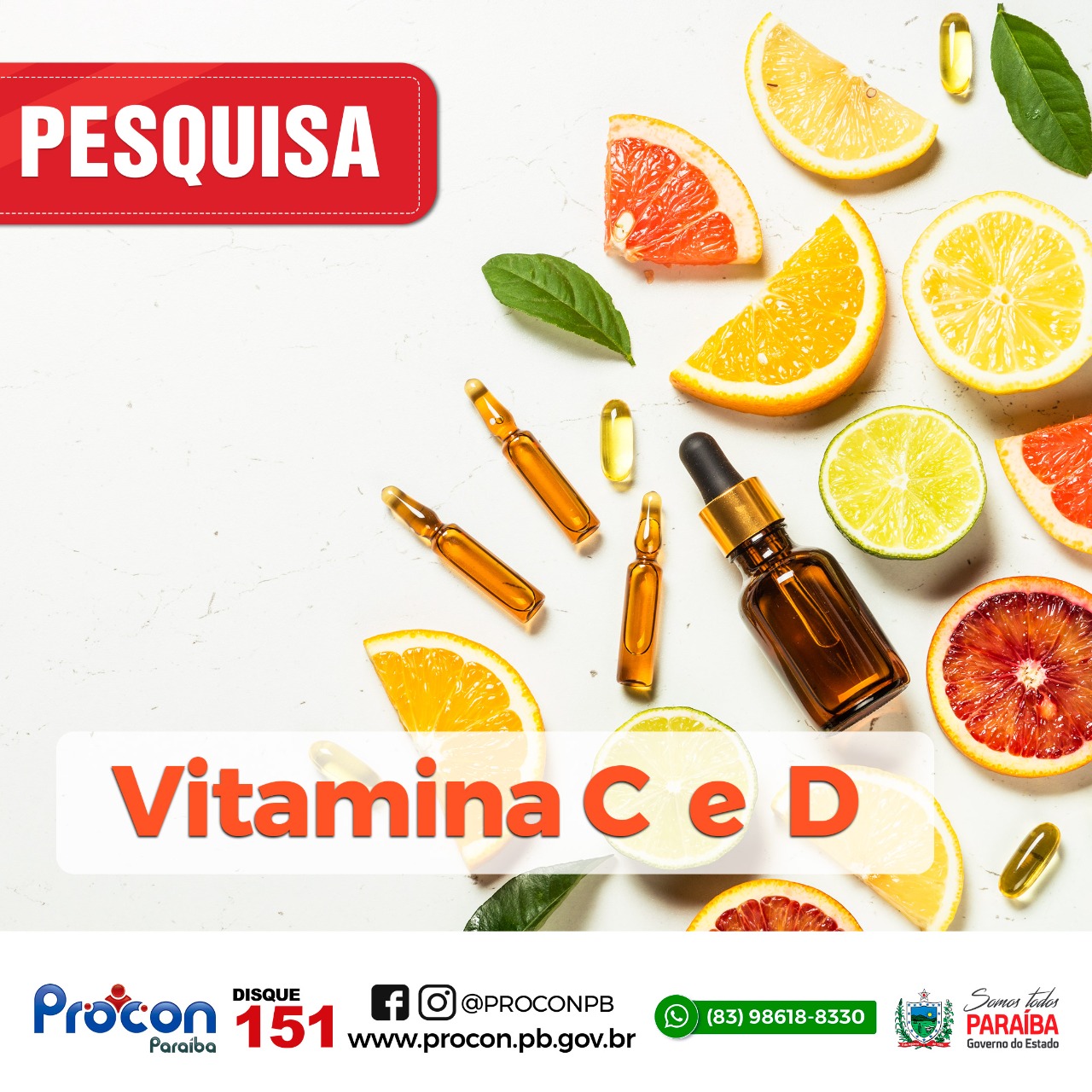 PROCON-PB realiza pesquisa dos preços de vitaminas C e D para gripe e diferença de preço chega à 227,10%