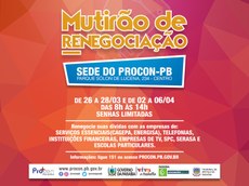A Autarquia de Proteção e Defesa do Consumidor – Procon-PB está realizando o mutirão de atendimento de superendividado em parceria com a Federação Brasileira de Bancos, (FEBRABAN), Empresas de serviços essenciais Energisa e Cagepa, Empresas de telefonias: Oi, Vivo, Claro e Tim, Escolas Particulares através do Sintep e órgãos Serviço de Proteção ao Crédito e empresas de TV.