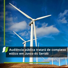 Nesta quinta-feira (21), a partir das 10h, a Sudema realizará mais uma audiência pública para a instalação de um complexo eólico no estado. Dessa vez, o encontro será referente à implantação do Complexo Eólico Serra do Seridó, na cidade de Junco do Seridó.